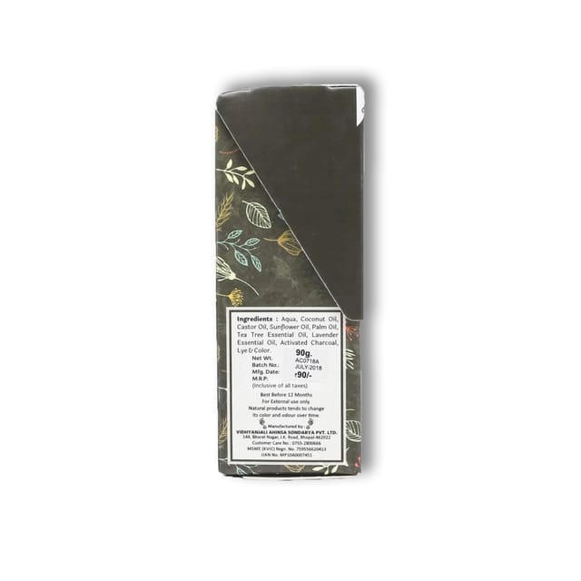 Activated charcoal in the Activated Charcoal Soap can be used to draws bacteria, toxins, like heavy metals, chemicals, dirt, oil, and other micro-particles to the surface of the skin. It then absorbs those foreign substances and carries them away when you rinse the charcoal off your body. It is ideal for oily and acne-prone skin. It absorbs excess oil (sebum secretion) which is one of the main causes of acne (pimples) formation. The soap is also enriched with the antibacterial tea tree essential oil that further helps in curing acne, dark spots, scars, pigmentation and blemishes making the skin clear and flawless.