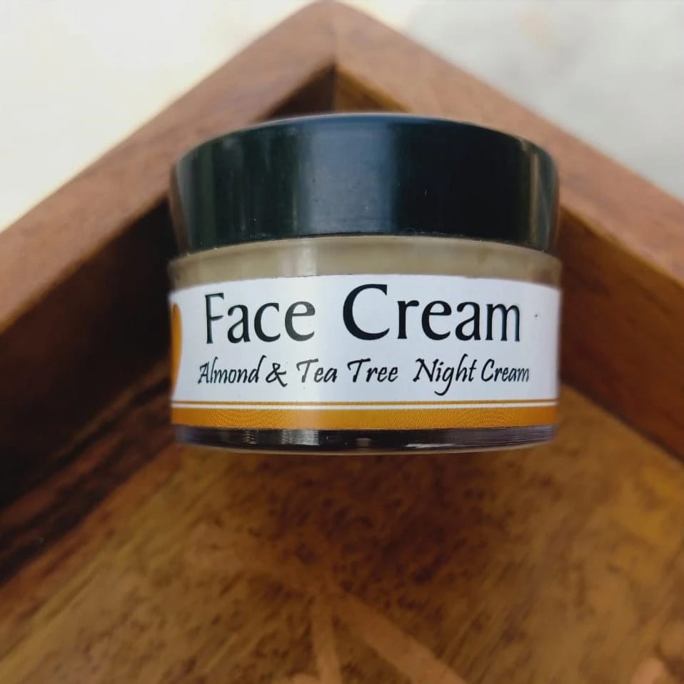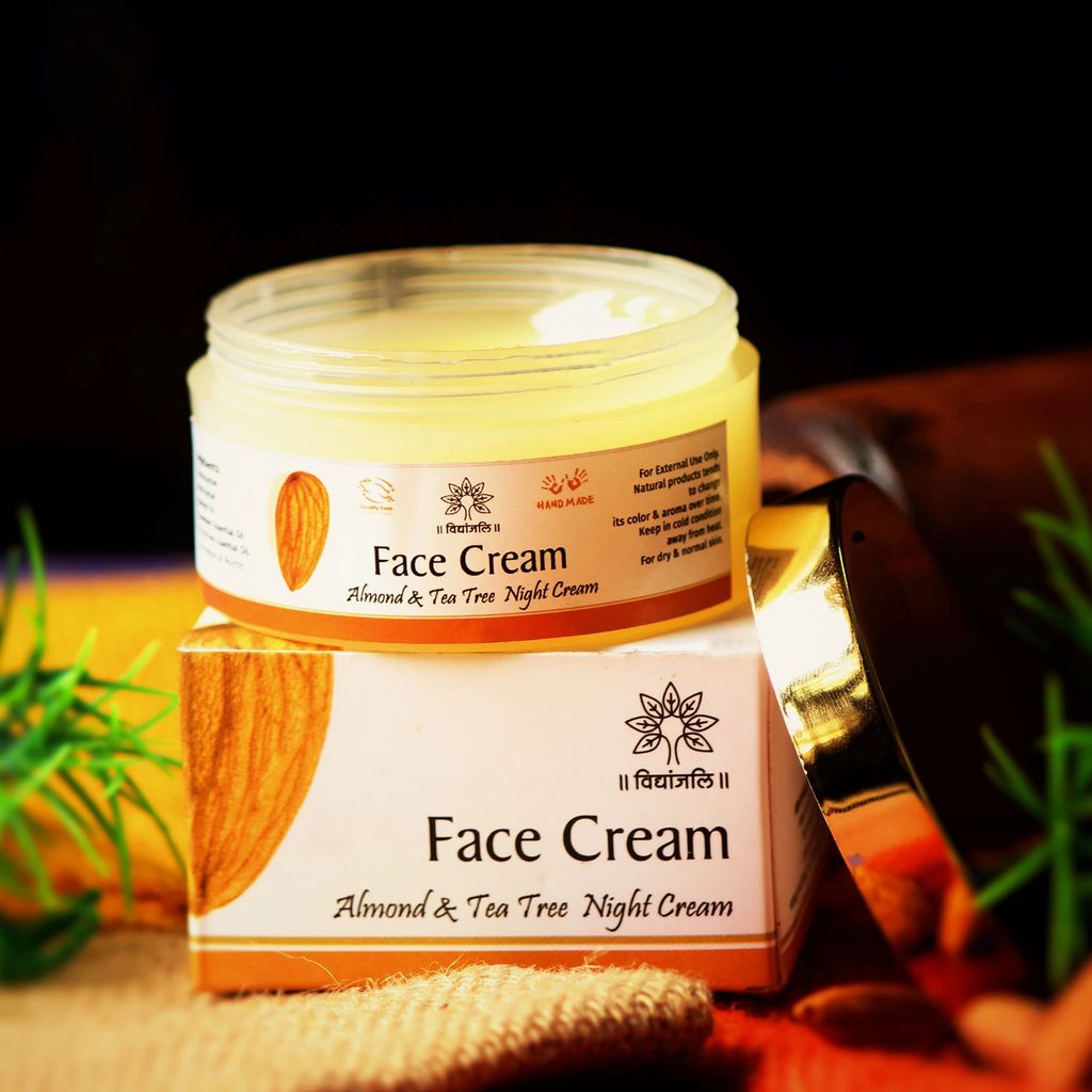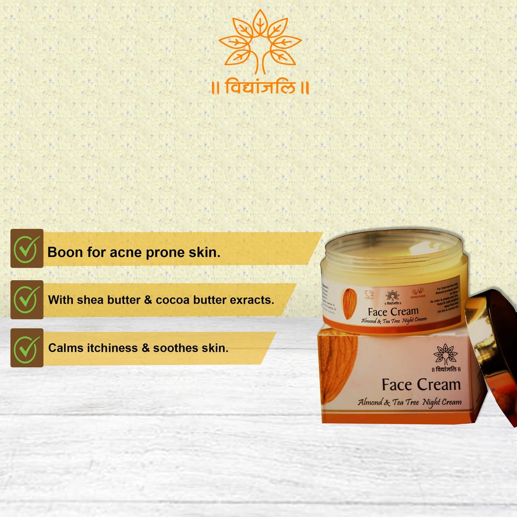 Almond Tea Tree Night Cream is a perfect night massage skin treatment. A boon for acne-prone skin. Tea tree essential oil helps in removing pimples and it effectively prevents further formation due to its antibacterial and antifungal properties. Pure plant extracts like Shea butter and Cocoa butter protects the skin’s natural oils and nourishes the skin simultaneously. Combination of tea tree oil and almond oil hydrates and moisturizes the skin. It is also a great soother for skin after shaving/waxing and not only calms down the itchiness of skin but also prevents clogging pores and ingrown hair. Treats wrinkles & Hyper Pigmentation.