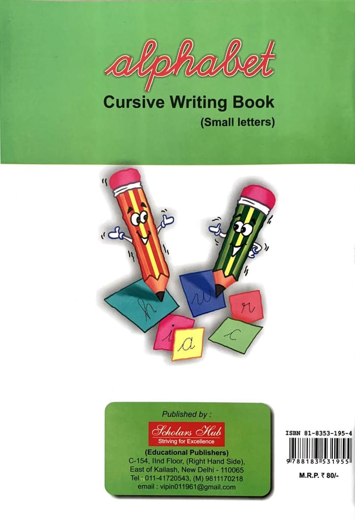 9.79E+12 607725eacbd5266c9ef16680 Alphabet Cursive Writing. (Small) https://www.bharatstores.com/s/5ed62b7c7d6b149e50662cc4/68d1773c1ff50338d77d3211/2021-02-15-145334.jpg This book will help the child to learn and write Cursive Small Alphabets. SH-157
