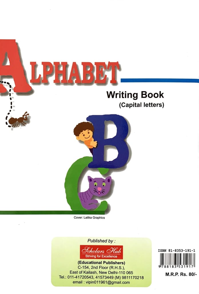 9.79E+12 607725e4cbd5266c9ef1631e Alphabet Writing. (Capital). https://www.bharatstores.com/s/5ed62b7c7d6b149e50662cc4/68d1774d7fd53eef1ecde358/2021-02-15-145149.jpg This book will help the child to learn and write Capital Alphabets. SH-155