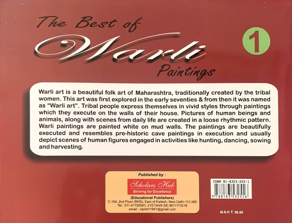 9.79E+12 6077263756531a6d1555b82e Best of Warli Paintings-Vol 1. https://www.bharatstores.com/s/5ed62b7c7d6b149e50662cc4/68d1765a1ff50338d77d305e/2021-01-21-152607.jpg Warli art is a beautiful folk art of Maharashtra, traditionally created by the tribal women. This art was first explored in the early seventies & from then it was named as Warli art . Tribal people express themselves in vivid styles through paintings which they execute on the walls of their house. Pictures of human beings and animals, along with scenes from daily life are created in a loose rhythmic pattern. Warli paintings are painted white on mud walls. The paintings are beautifully executed and resembles prehistoric cave paintings in execution and usually depict scenes of human figures engaged in activities like hunting, dancing, sowing and harvesting....And more! SH-233