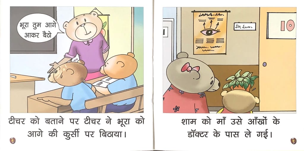 9.79E+12 5fff30eb6fa108cc973c4363 Bhoora Bhalu Bahut T.V.Dekhta Hai.-3. https://www.bharatstores.com/s/5ed62b7c7d6b149e50662cc4/68d1775ba86f54a1d49ce5ec/bhurapercent20bhalupercent201topercent206-6.jpg Browny Bear watches cartoons all day long. Now he cannot see clearly and has to wear spectacles. This book will help the child to learn reading in a fun and interactive manner. SH-106