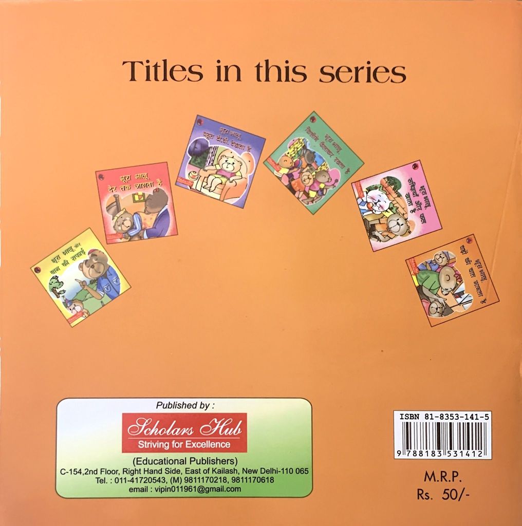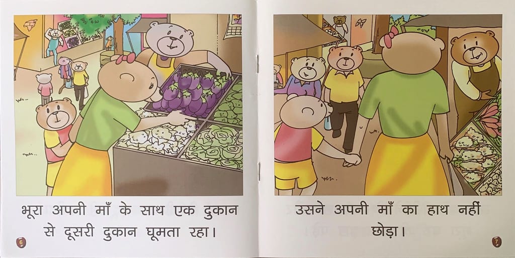 9.79E+12 5fff308d96e4adcc523007a4 Bhoora Bhalu Baroo Ki Baat Manta Hai.-6. https://www.bharatstores.com/s/5ed62b7c7d6b149e50662cc4/68d1760f1ff50338d77d2fdc/bhurapercent20bhalupercent201topercent206-15.jpg Browny Bear runs around and does not hold his parents' hand while walking on the road.This book will help the child to learn reading in a fun and interactive manner. SH-109