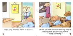 Browny Bear watches cartoons all day long. Now he cannot see clearly and has to wear spectacles. This book will help the child to learn reading in a fun and interactive manner.
