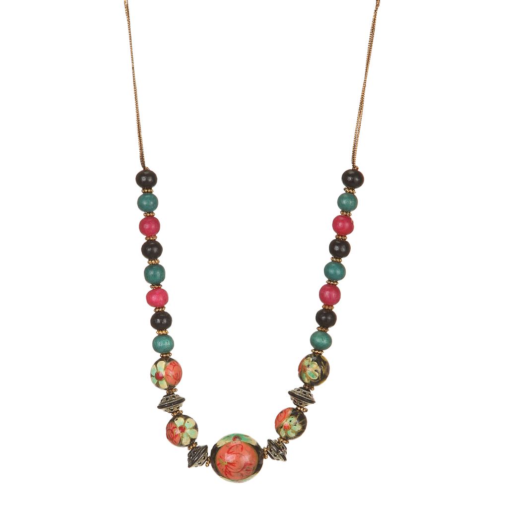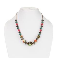 This item is made completely by hand. No machinery is used. Even the beads also are made by hand. All components are sourced from different villages scattered around India. They are gathered and then combined into the beautiful peice that is here. All the beads are made by local artisans who are financially very poor. Our motive is to help them as much as we can.