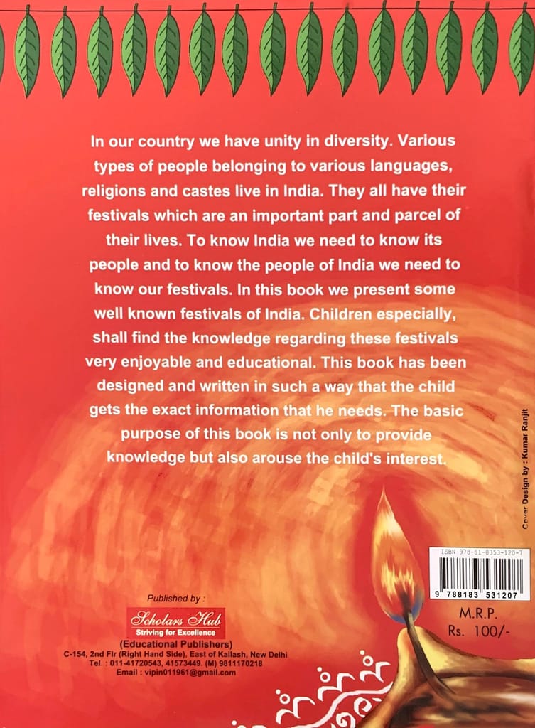 In our country we have unity in diversity. Various types of people belonging to various languages, religions and castes live in India. They all have their festivals which are an important part and parcel of their lives. To know India we need to know its people and to know the people of India we need to know our festivals. In this book we present some well known festivals of India. Children especially, shall find the knowledge regarding these festivals very enjoyable and educational. This book has been designed and written in such a way that the child gets the exact information that he needs. The basic purpose of this book is not only to provide knowledge but also arouse the child's interest.