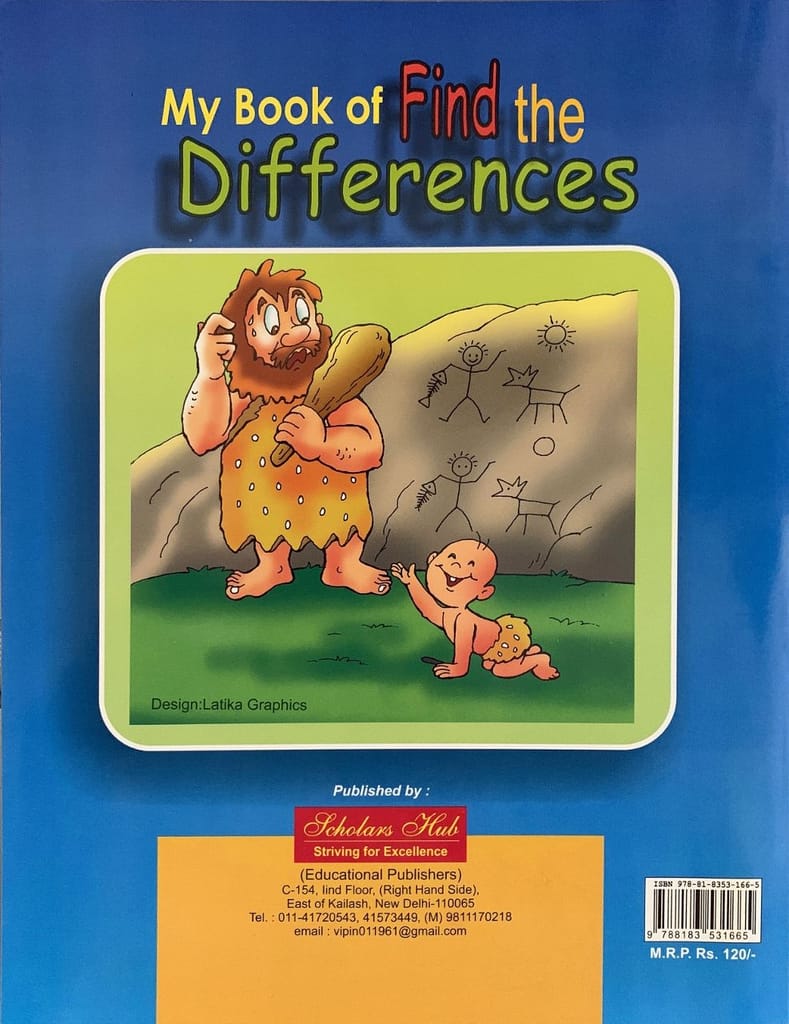 9.79E+12 5fff30ad202203cc4c825513 My Book of Find the Differences. https://www.bharatstores.com/s/5ed62b7c7d6b149e50662cc4/68d1757c1ff50338d77d2f1c/differencespercent20percent20-.jpg This book will help your child learn and have fun through the power of finding the difference between two pictures. This book enables children to challenge their brains, sharpen and strengthen their thinking process. SH-19