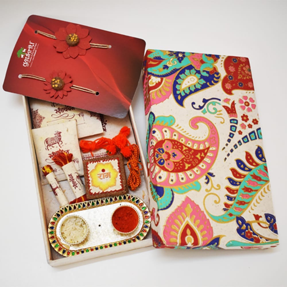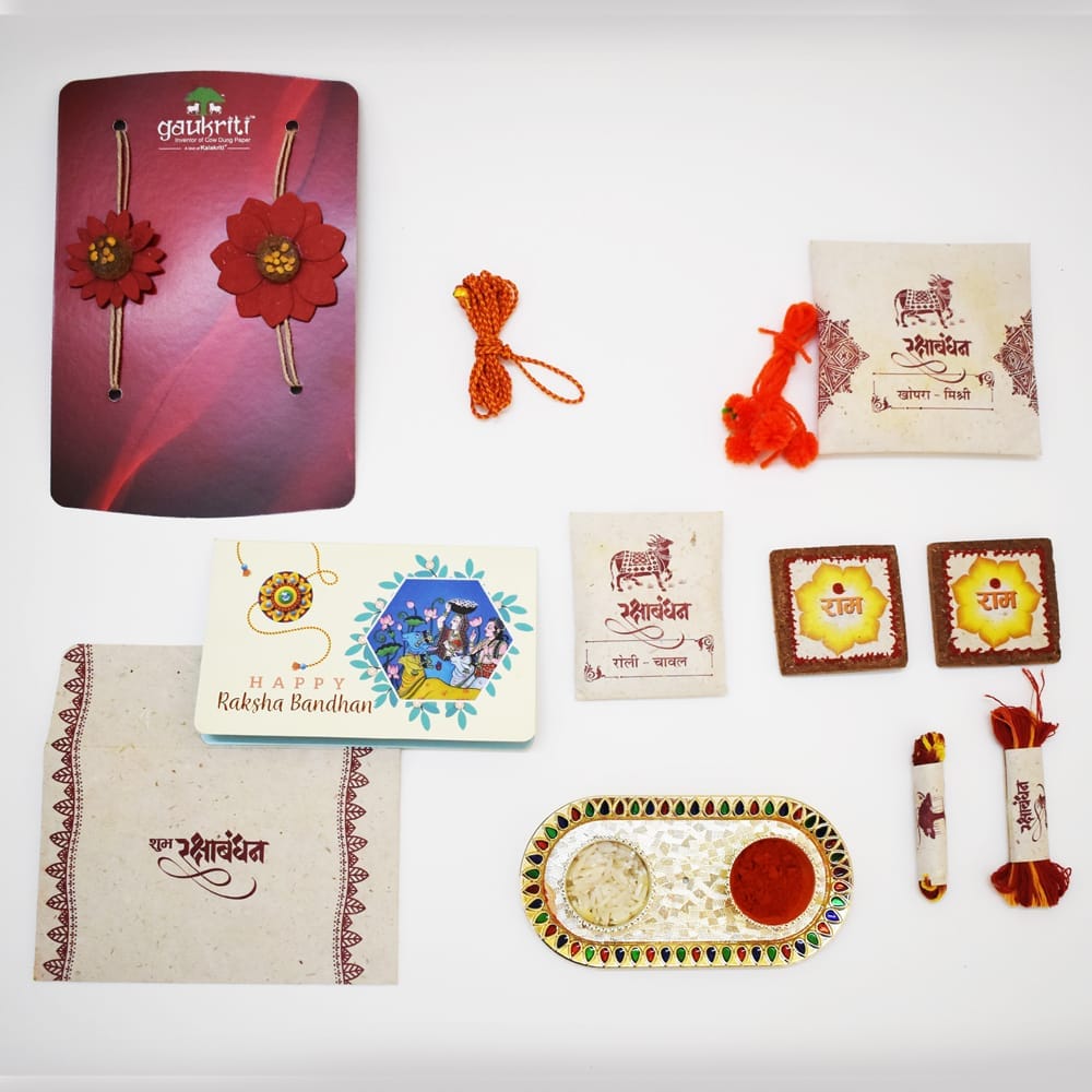 This Gaukriti Cow dung paper and gomay seed rakhi is sustainable from the time it was made till it gets mixed up in the soil, leaving its footprint in form of a plant by sowing the seed inculcated in the rakhi. Buy Eco friendly Cow Dung products, contribute towards Gauseva and care for Gomata.