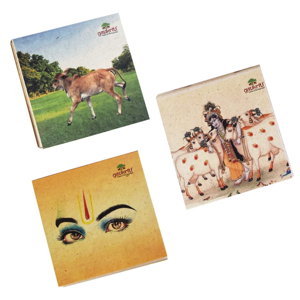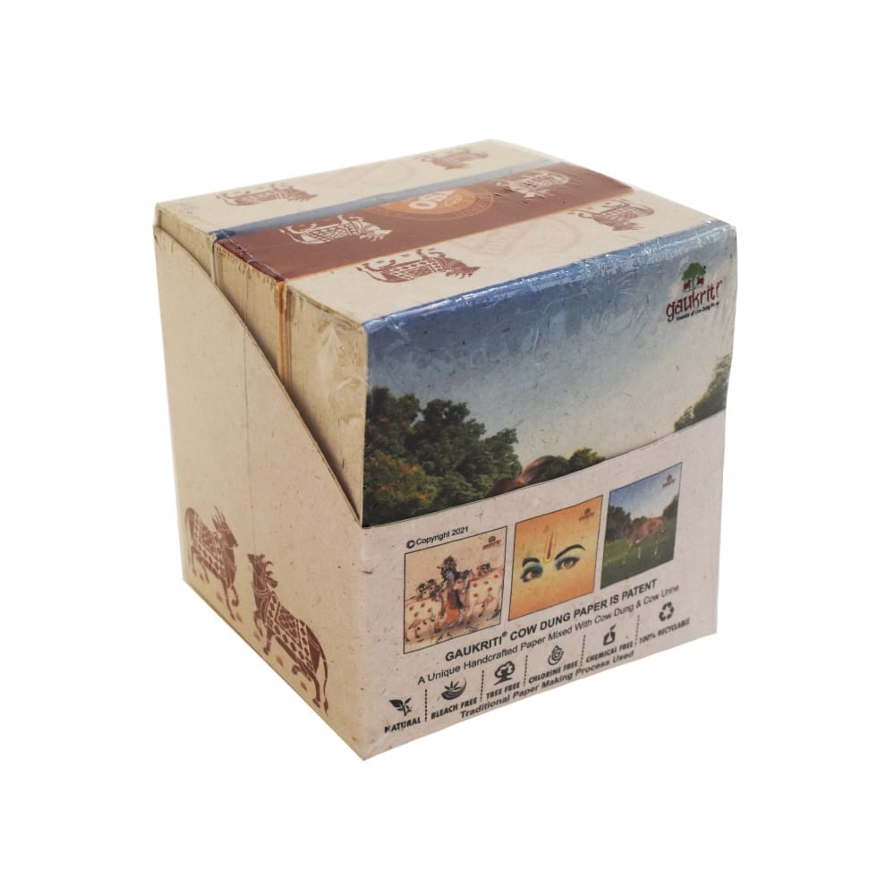 Gaukriti Products are Patented. They are unique, handcrafted, made using Cow Dung, Urine, Natural, Bleach free, Tree-free, Chlorine free, Chemical free, and are 100% Recyclable and Environment friendly. Gaukriti Cow dung products are sustainable from the time they are made till they get mixed up in the soil again. Buy Eco friendly Cow Dung products, contribute towards Gauseva and care for Gomata.