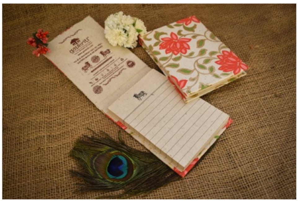 Gaukriti Product’s are Patent, A unique handcrafted Paper which is Bleach free, tree-free, Chlorine free, Chemical free ,100% Recyclable Traditional paper making process it is totally organic paper.