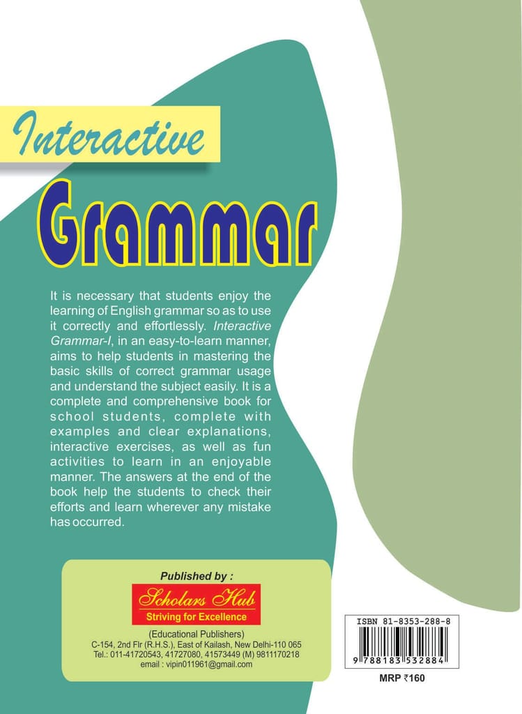 9.79E+12 5fff30d896e4adcc52300e55 Interactive Grammar-3. https://www.bharatstores.com/s/5ed62b7c7d6b149e50662cc4/68d17483a86f54a1d49cde59/interactivepercent20grammarpercent203percent20-percent20front.jpg Interactive Grammar Series, in an easy-to-learn manner, aims to help students in mastering the basic skills of correct grammar usage and understand the subject easily. A comprehensive series for school students, complete with examples and clear explanations, interactive exercises, as well as fun activities to learn in an enjoyable manner. The answers in each book help the students to check their efforts and learn wherever any mistake has occurred. SH-81