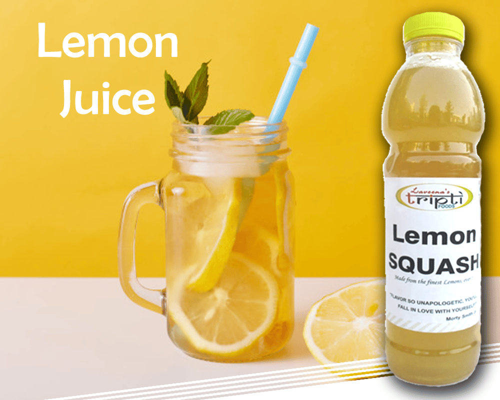 We all are fond of that neemboo "शिकंजी", or "नींबू पानी" in summers or in humid areas. At Tripti, we blend finest quality lemon juice from fresh lemons with sugar syrup so you just have to add some water to it and your "नींबू पानी" is ready. No gumming agents are added in it, you will feel the finest blend we use to prepare at home. Lemon juice detoxifies the body, adding more energy to work in peak summers. Also you can add mint leaves and black salt "काला नमक" to it for more nourishing and healthy taste. Enjoy the perfect blend of taste and purity.