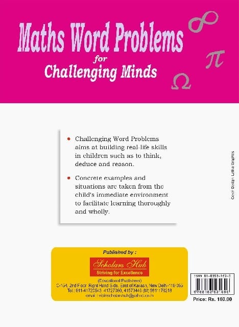 9.79E+12 5fff30c385393dcc9ecd10d7 Maths Word Problem for Challenging Minds-1 https://www.bharatstores.com/s/5ed62b7c7d6b149e50662cc4/68d174fd1ff50338d77d2d18/mathspercent20wordpercent20problempercent201percent20-percent20frontpercent20-.jpg Challenging Word Problems aims at building real-life skills in children such as to think, deduce and reason. ? Concrete examples and situations are taken from the child's immediate environment to facilitate learning thoroughly and wholly. SH-50