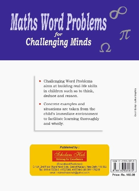 9.79E+12 5fff30c496e4adcc52300c76 Maths Word Problem for Challenging Minds-3 https://www.bharatstores.com/s/5ed62b7c7d6b149e50662cc4/68d174ef7fd53eef1ecddeff/mathspercent20wordpercent20problempercent203percent20-percent20frontpercent20-.jpg Challenging Word Problems aims at building real-life skills in children such as to think, deduce and reason. ? Concrete examples and situations are taken from the child's immediate environment to facilitate learning thoroughly and wholly. SH-52