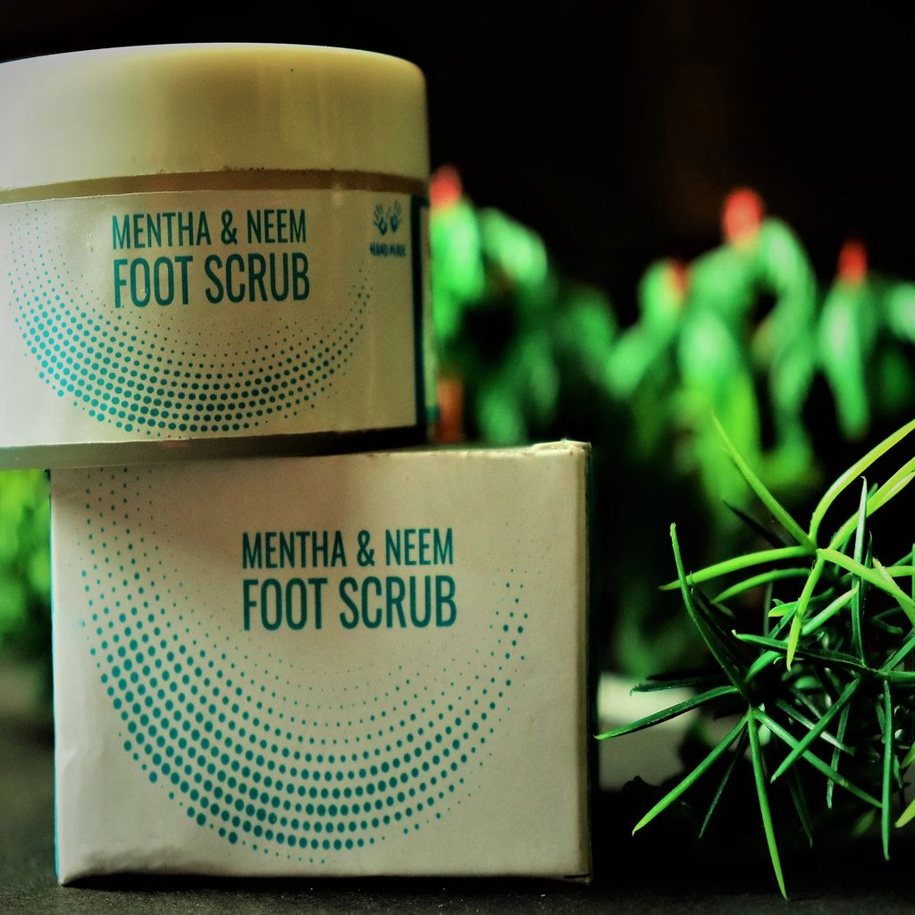 Mentha Neem Foot Scrub gently exfoliates and removes the dirt and dead layer off the skin. Menthol or peppermint essential oil has anti-inflammatory and anti-bacterial properties. While neem essential oil has high level of antioxidants that protects the skin from environmental damage. This scrub is a very effective tan-remover.