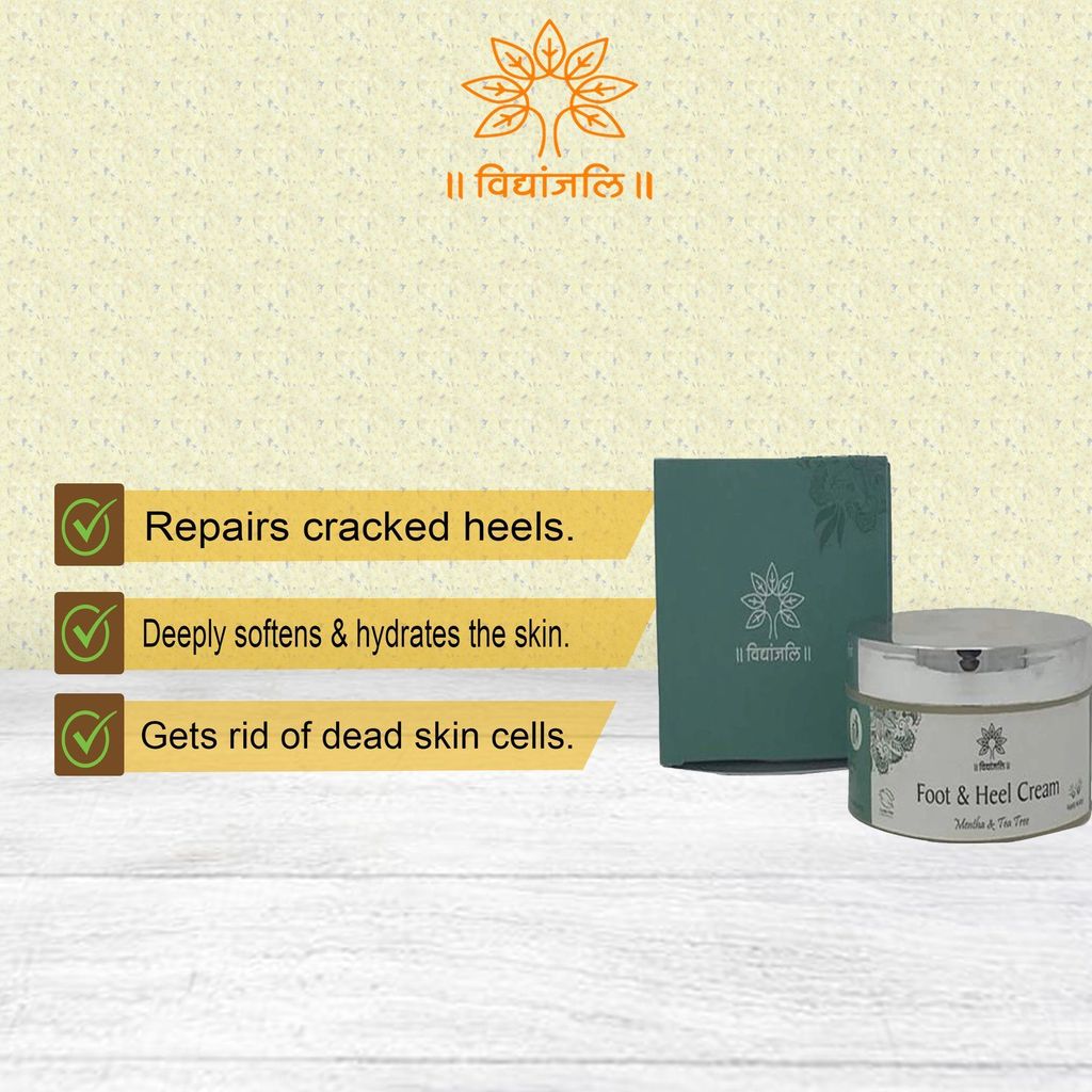 Mentha Tea Tree Foot Cream repairs cracked heels and deeply moisturizes them. Mentha, lemon, eucalyptus and tea tree essentials oils intensely nourishes and smoothes the chapped skin. Neem essential oil has healing properties therefore, it helps in repairing the cracked heels. Lemon essential oil is very effective in getting rid of dead skin cells, further resulting in softer and smoother feet. Both, eucalyptus & tea tree essential oils effectively soothes the cracked heels. It is also enriched with Shea butter that deeply softens the skin, keeping it hydrated throughout the day.