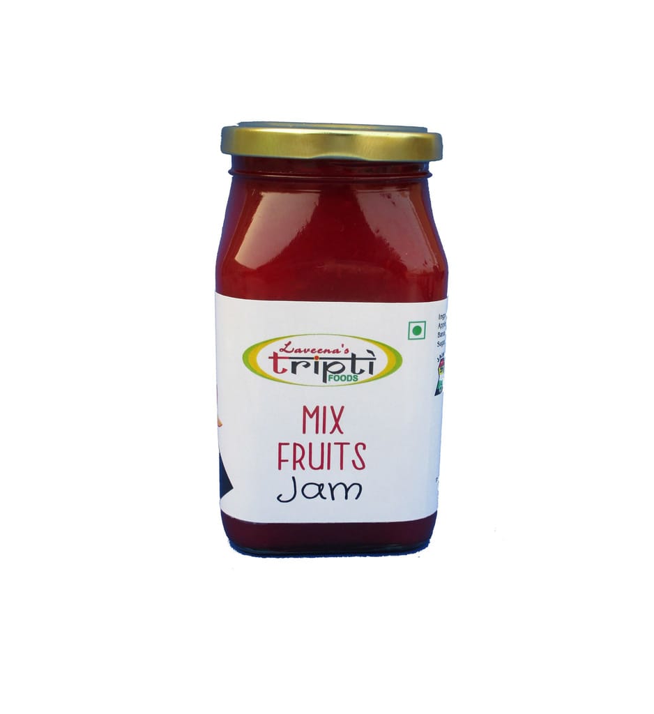 MIX FRUITS JAM, very popular among children for their breads and prathas. At TRIPTI we have blended finest quality papaya, bananas, pomegranates, "rani pineapple", oranges & guava as well. You can feel the chunks in it, taste the perfect blend of taste and purity.