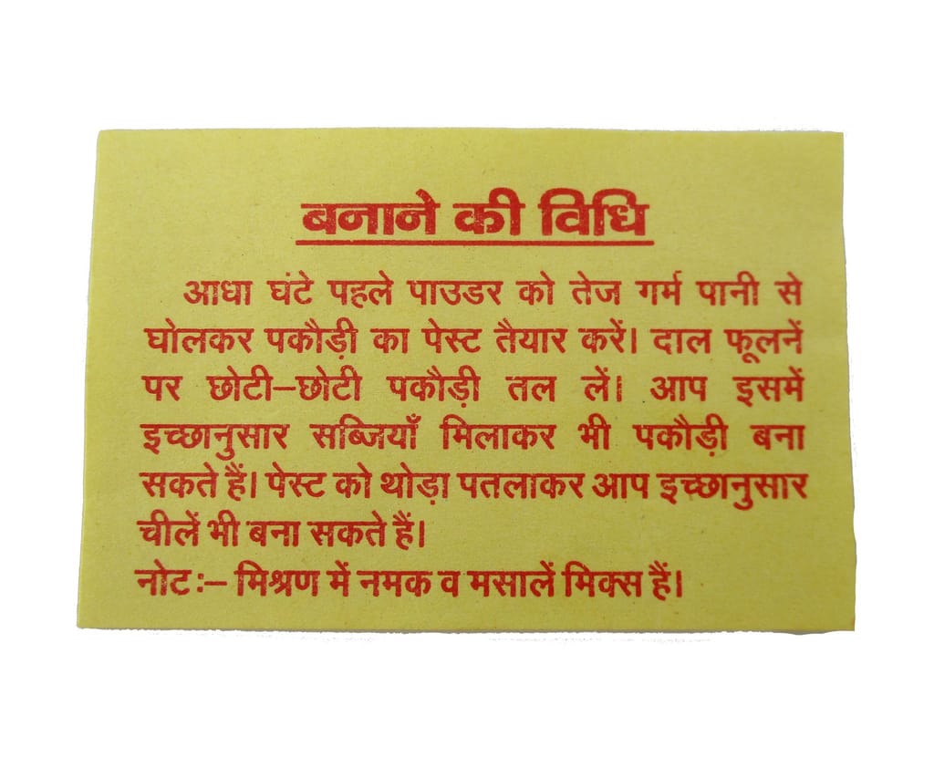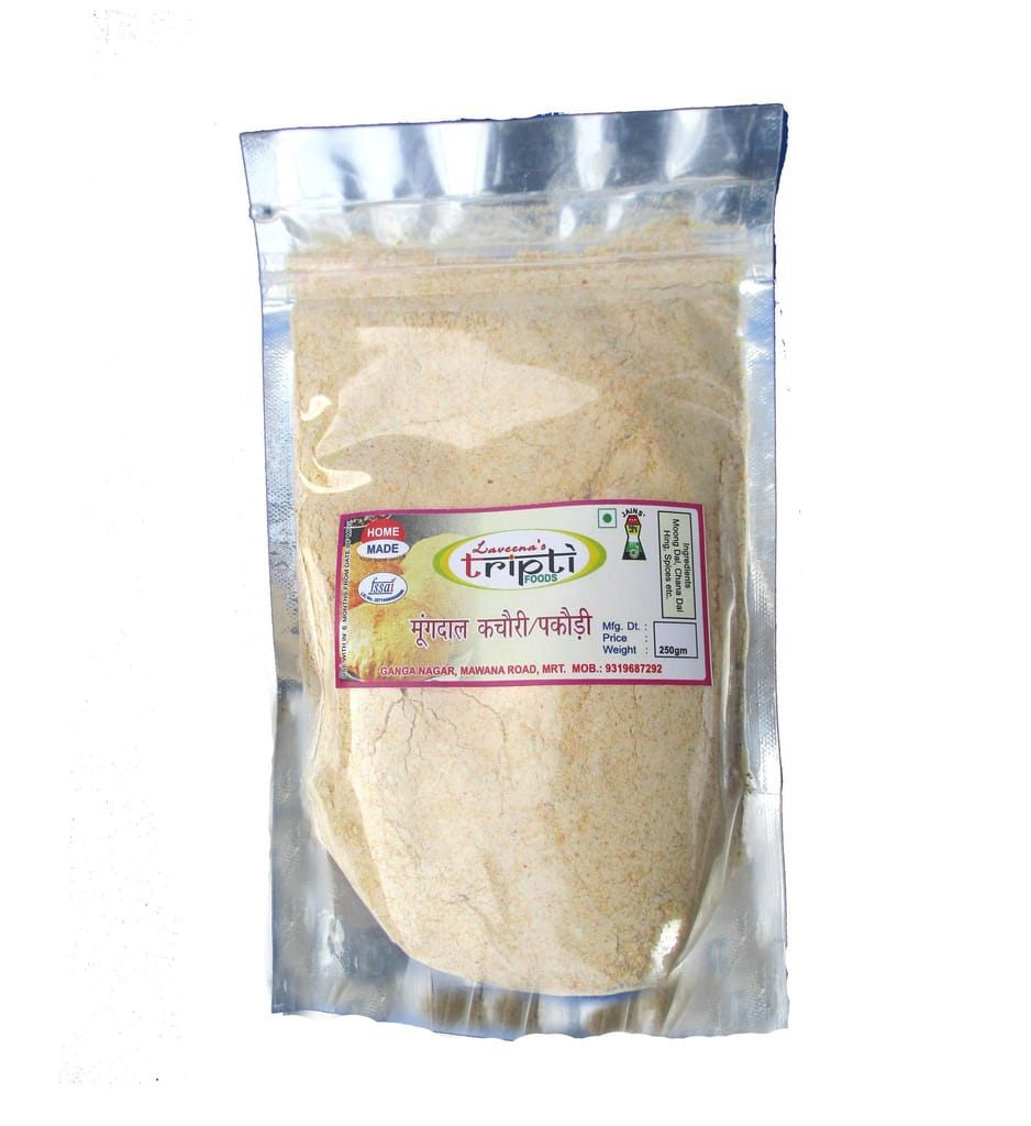 100% home made. Made after using cleaned Moong Dal, drying it and then grounding it to make pitthi. All masale used are freshly ground at home. No preservatives used.