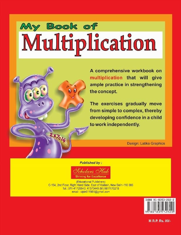 9.79E+12 5fff30a996e4adcc52300a50 My Book of Multiplication. https://www.bharatstores.com/s/5ed62b7c7d6b149e50662cc4/68d17580b4a6fc63ec503495/mypercent20bookpercent20ofpercent20multiplicationpercent20-percent20frontpercent20-.jpg A comprehensive workbook on multiplication that will give ample practice in strengthening the concept. The exercises gradually move from simple to complex, thereby developing confidence in a child to work independentl SH-17