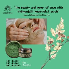 Neem-Tulsi face scrub is gently exfoliating the skin by removing dead skin cells, dirt, and impurities from the skin, leaving it smooth and refreshed. Use it once or twice a week to get a supple skin. Neem & Tulsi Essential oil kills the bacteria on face and remove the acne however the walnut scrub removes dirt, dead skin cells, and impurities. It also helps skincare products penetrate deeply, makes your skin look younger and more radiant, and leaves the skin feeling soft and smooth.