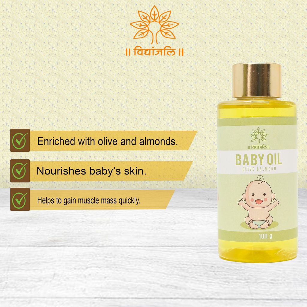 Blended with the goodness of olives and almonds Vidhyanjali’s Olive-Almond Oil is perfect for infants. It provides nourishment to their soft skin. Almond oil contains Vitamin E and D, it has anti-inflammatory properties which helps in getting rid of skin irritation, redness or rashes. Both Olive and Almond are all season natural moisturizer that prevents baby’s skin from drying up however use generously in winter and moderately in summers. It relaxes the muscles, promotes circulation which helps in better sleep and also helps infants to gain muscle mass quickly.