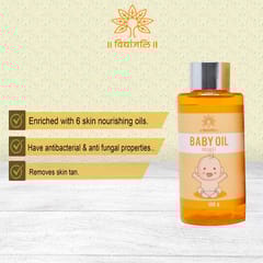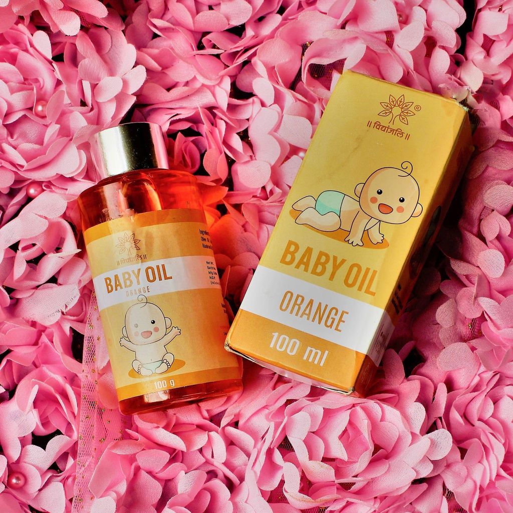 Orange baby oil enriched with six skin-nourishing oil. Olive oil is a perfect moisturizer for skin, it makes skin smooth, shiny and healthy. Sesame and coconut oil have antibacterial, anti-fungal properties and is useful for skin irritation and rashes. The sweet scent of orange essential oil makes it perfect for children.