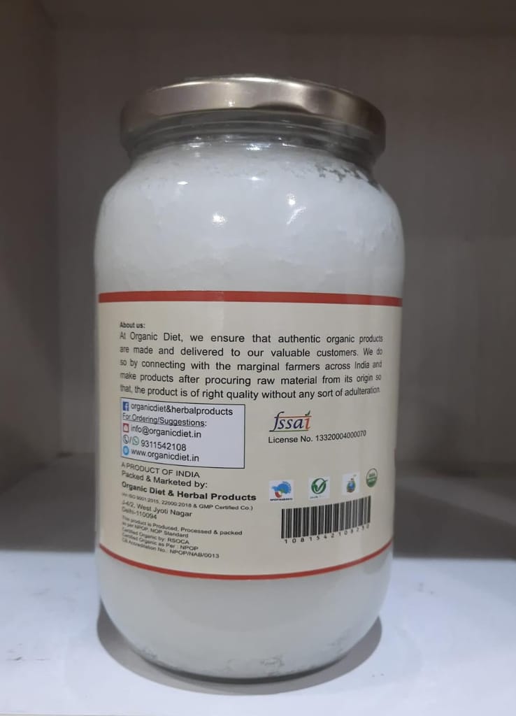 Organic Diet’s Virgin Coconut Oil is cold pressed. Being produced through a natural process, it retains all its original constituents and properties. It is used as a healthy substitute for cooking oils.