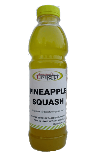Pineapple squash is made up with finest quality "raja" pineapples. As these are rich in vitamins, joyful in taste and its juice is more pulpy, this juice is blended with sugar syrup, so you just have to take one fourth measure of a glass, mix it with cold water and taste the perfect blend of purity. Tastes joyful if black salt "???? ???" is added to it.