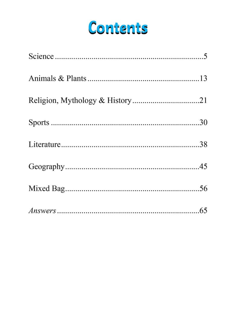 Quiz-Kit is a General Knowledge book which contain questions of multiple choice types with answers on various subjects for quiz and general knowledge - obviously enthusiasts of all age groups. The books also give students an insight into various subjects ranging from human history, mythology, sports, current affairs, science, geography, mixed bag etc. and thus provide an all round coverage. It will give students an insight into the world of information and knowledge.
