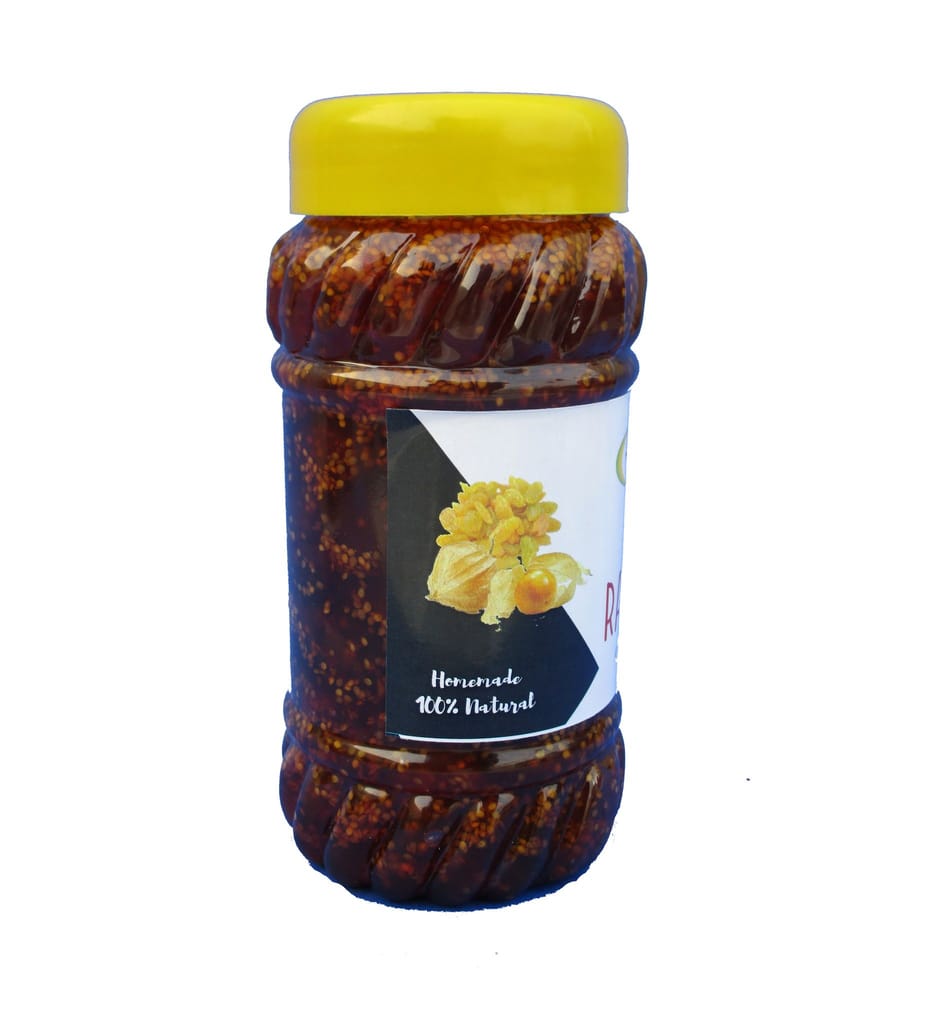 ????? (Cape gooseberry), some of you may understand this by "??????" orangish in colour mainly found in upward regions of northern India, this fruit only comes for 10-15 days, it has a joyfull sweet & sour taste, with tiny white colour chunks into it. It is a good source of Vitamin C and helps in preventing allergies giving a good health to heart. At TRIPTI we have blended this unique fruit with raisin (??????), garam masala, salt with other homegrounded masale, so as to give a remarkable taste of perfect blend of this carecrafted food product.
