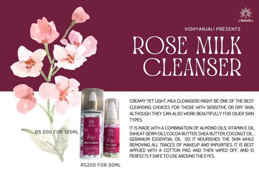 Rose Milk Cleanser is creamy yet light, might be one of the best cleansing choices for those with sensitive or dry skin, although they can also work beautifully for oilier skin types. It is made with a combination of almond oils, vitamin e oil (wheat germ oil), cocoa butter, shea butter, coconut oil, geranium essential oil so it nourishes the skin while removing all traces of makeup & impurities.
