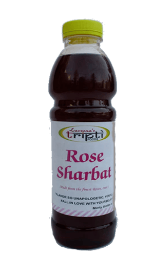 Rose "?????" is a perfectly known name which symbolises love, simplicity, aroma and much more. At Tripti, with distillation process finest quality handpicked "???? ?????" / roses are taken through distillation process and then the final produce is blended with sugar syrup. "???? ?????" is commonly known finest variety of rose which has a lovely smell and its petals are sweet when eaten. Since we use best quality ingredients at Tripti, so there is no need to add any essence and colour to the syrup, it is naturally inbuit in it. Rose syrup is a rich source of fibre, vitamins, its unapollogetic smell and taste soothes the mind, prevents depression as well. Taste the perfect blend of taste and purity.
