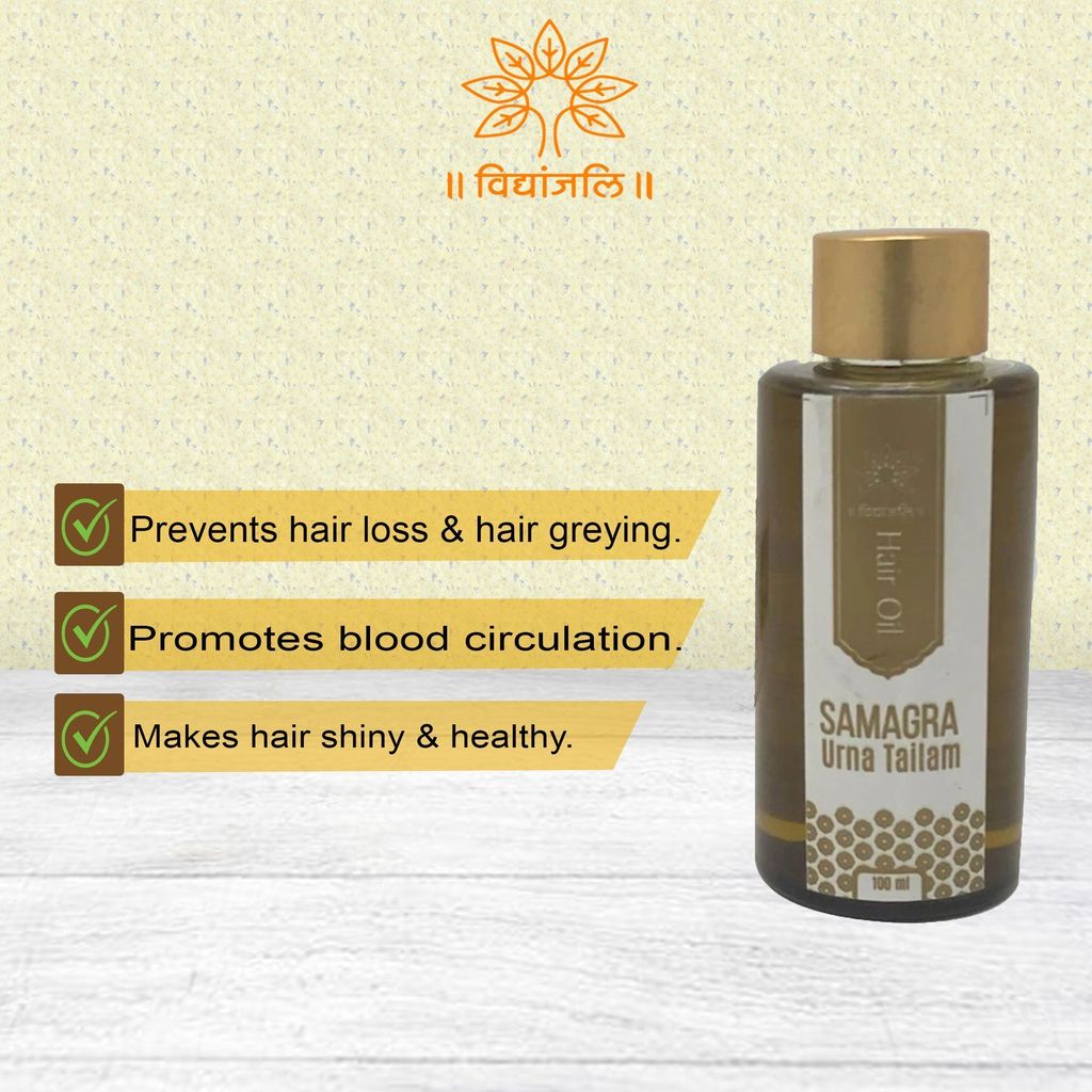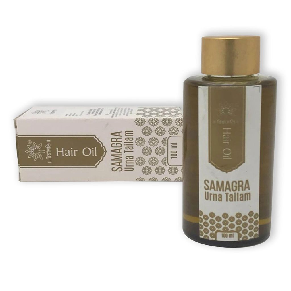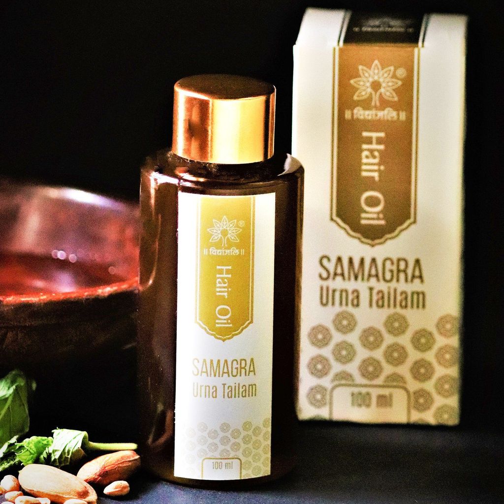 The blend of multiple oils and herbs makes Samagra an intensive hair oil. It promotes hair growth, prevents hair loss and greying. This ayurvedic recipe promotes blood circulation and ensures better nourishment of hair follicles resulting in hair growth. It makes hair look shiny and healthy.