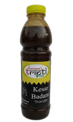 "????? ?????" the name we ever listen we always remember falgun days back, though it is mostly used as a welcome drink for festival of colours, yet is a rich source of vitamins, proteins and minerals. At Tripti Foods, selected nuts (?????, khas-khas (?????), ???????, ??????, ????, ???? ?????, ????, ???? ??????, ???????) and much more items are added, soaked in water and then specially crushed on a marble (??? - ?????), so as to maintain the original taste and fragrance of each and every thing mixed in it. ????? is specially taken with cold milk and water, whereas even if it is taken with hot milk, it tastes better as well. Its useful for preventing constipation, depression, heart problems, promotes health and development of mind as well. Taste the perfect blend of purity and richness.
