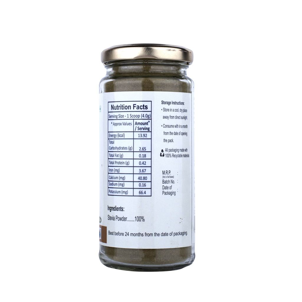 A natural, calorie-free sweetener approximately 200 to 300 times as sweet as sugar. Boil stevia leaves powder in tea or milk. Use dry stevia leaves powder to make a syrup for sweetening beverages, sauces or other syrups. This a natural Dry Herb.