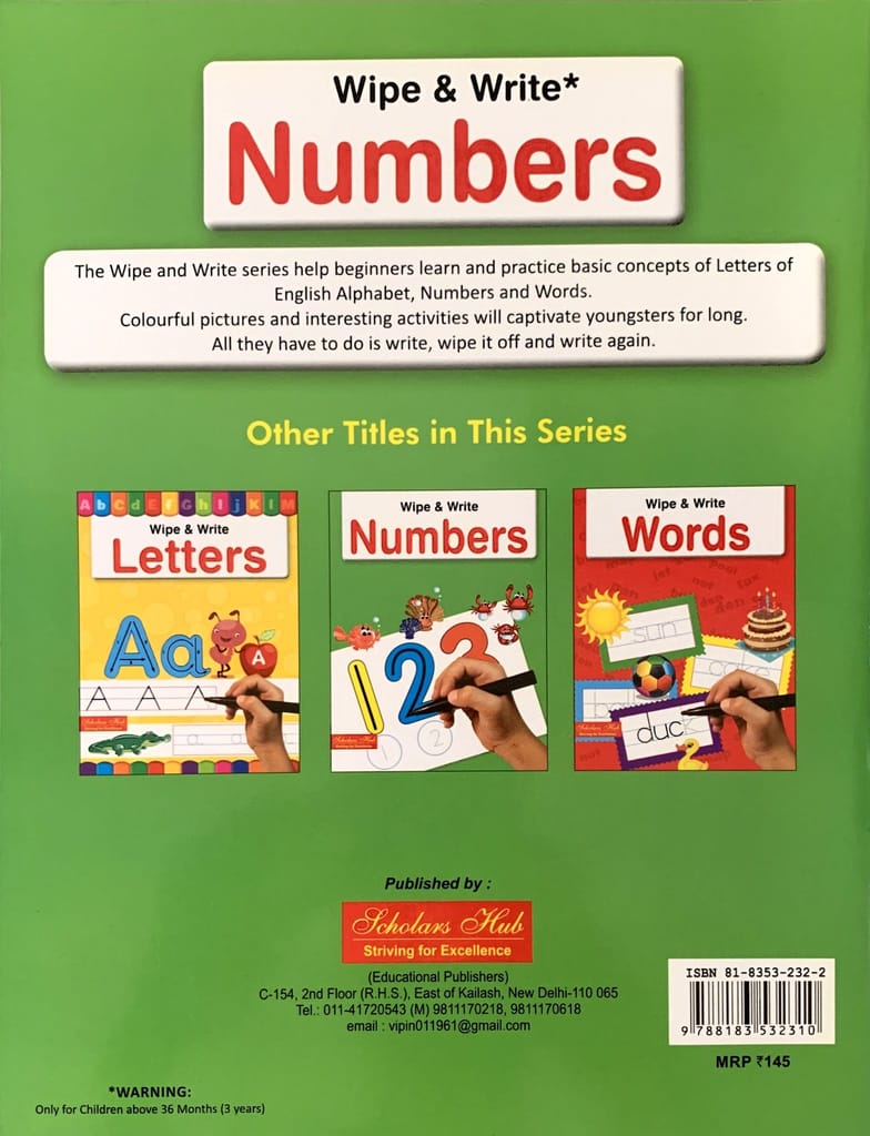 9.79E+12 607725ef56531a6d1555ae41 Wipe & Clean.-Numbers.. https://www.bharatstores.com/s/5ed62b7c7d6b149e50662cc4/68d1773304bca071c15ee8f7/2021-02-15-144714.jpg This book will help the child to learn and write Numbers. SH-161